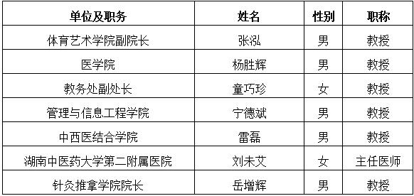 根据湖南省中医药管理局《关于组织我省高层次卫生人才“225”工程和国家重点专科学术带头人赴澳大利亚新西兰培训交流的通知》(湘中医药函[2017]21号)文件规定的团组人数、出访国别等要求,应澳大利亚中医针灸学会和新西兰中医学院邀请,我校张泓等7人拟团于2017年6月17日至2017年6月26日赴澳大利亚和新西兰执行医药卫生合作交流任务,在澳大利亚、新西兰共停留10天。其出访人员信息如下: